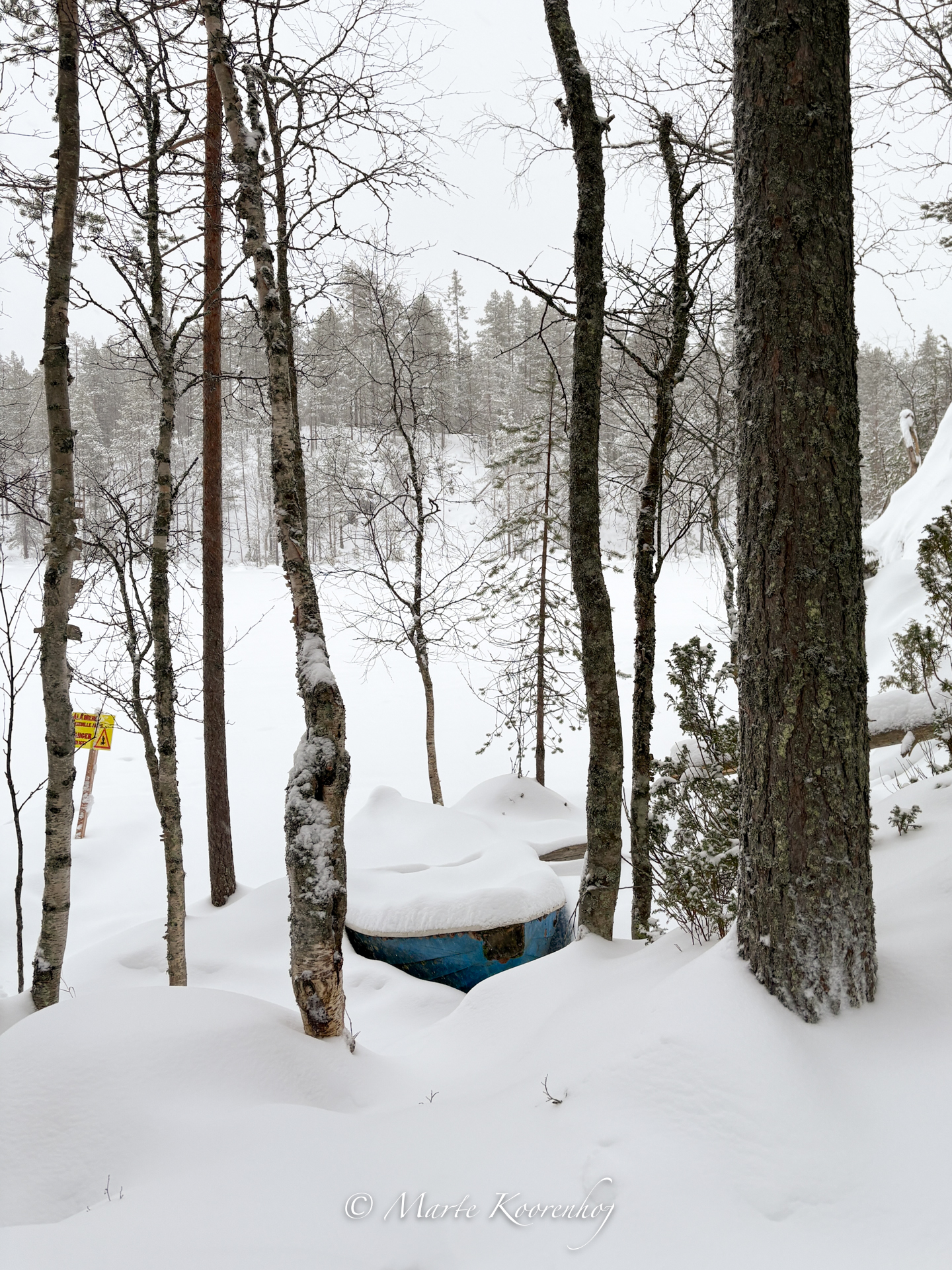 Blauw bootje in de sneeuw